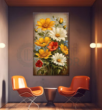 Colourful flowers in light textured painting- Flower-V-470 - Without Frame - Only Printed Canvas / 18x30 inches