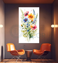 Colourful flowers in white textured background painting - Flower-V-674 - Without Frame - Only Printed Canvas / 18x30 inches