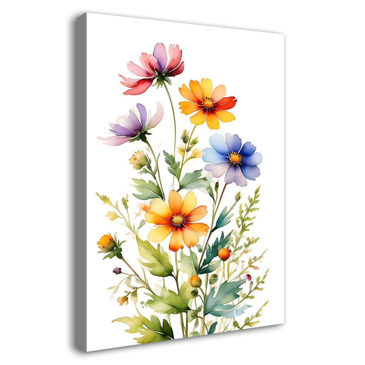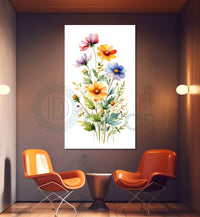 Colourful flowers in white textured background painting - Flower-V-689 - Without Frame - Only Printed Canvas / 18x30 inches