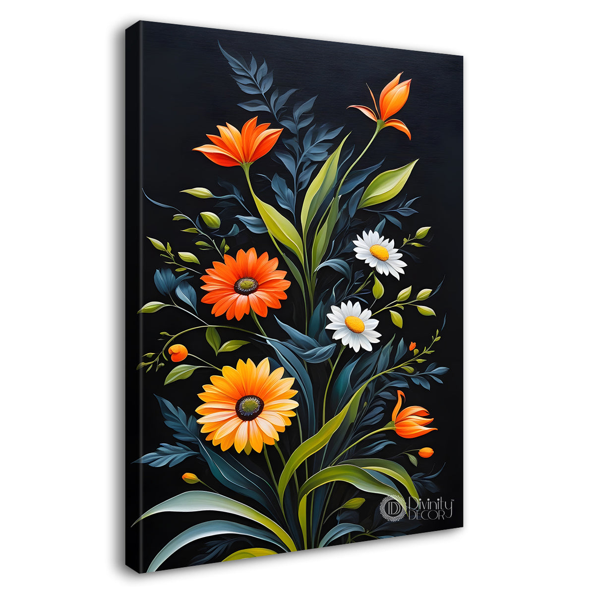 Colourful flowers with leaves in dark textured background painting- Fl – Divinity Decor index