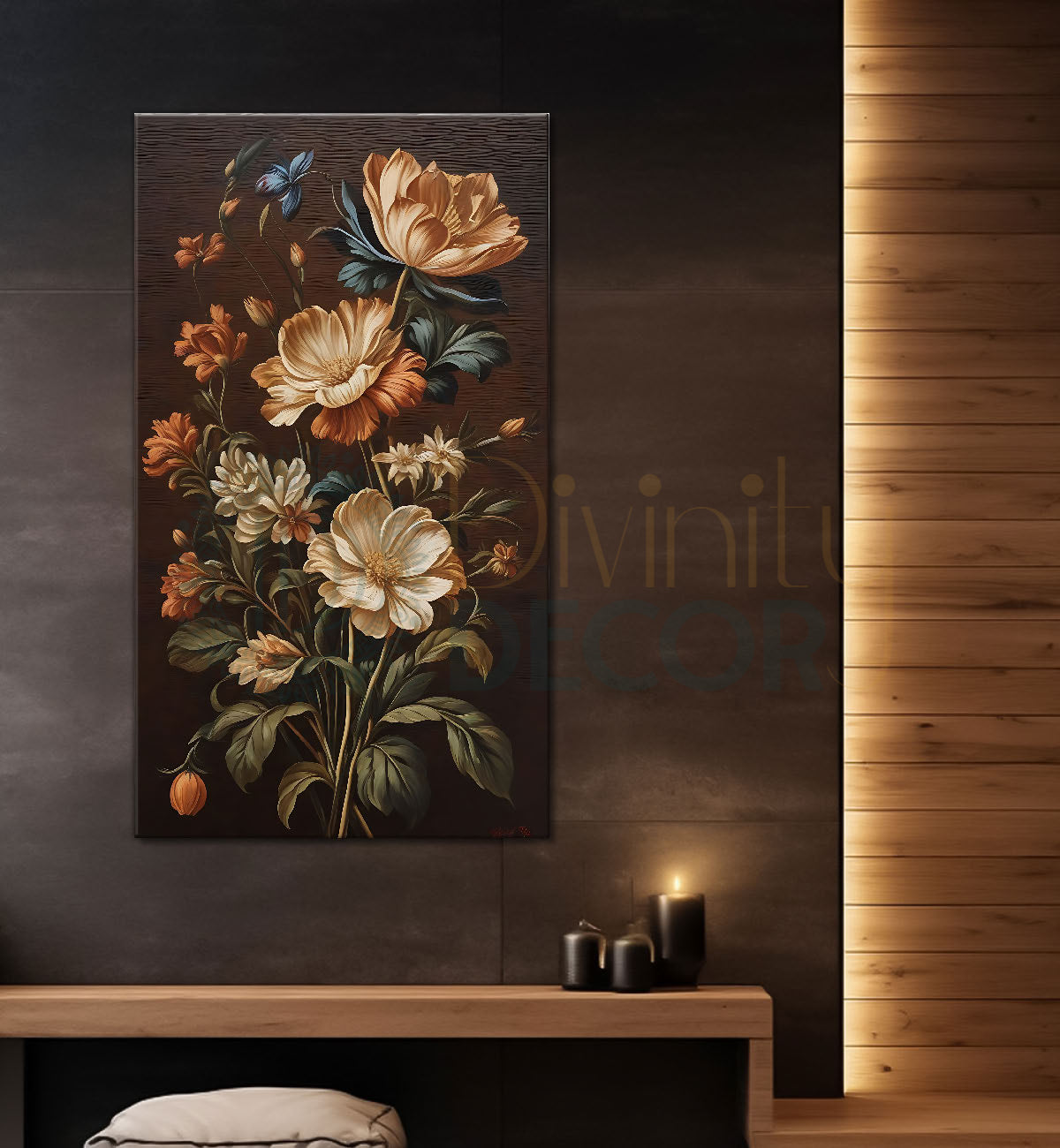 Flowers in brown background textured art - Flower-V-439 – Divinity Decor index