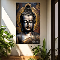 Golden buddha face with grey background textured painting - Buddha-V-38 - Without Frame - Only Printed Canvas / 18x30 inch