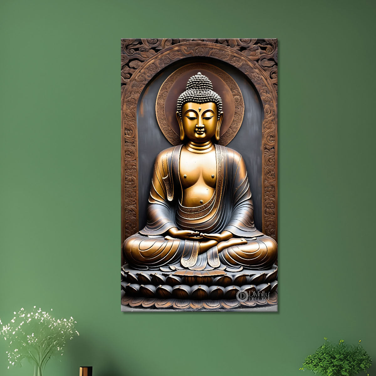 Golden buddha with grey background textured painting - Buddha-V-36 - Without Frame - Only Printed Canvas / 18x30 inch
