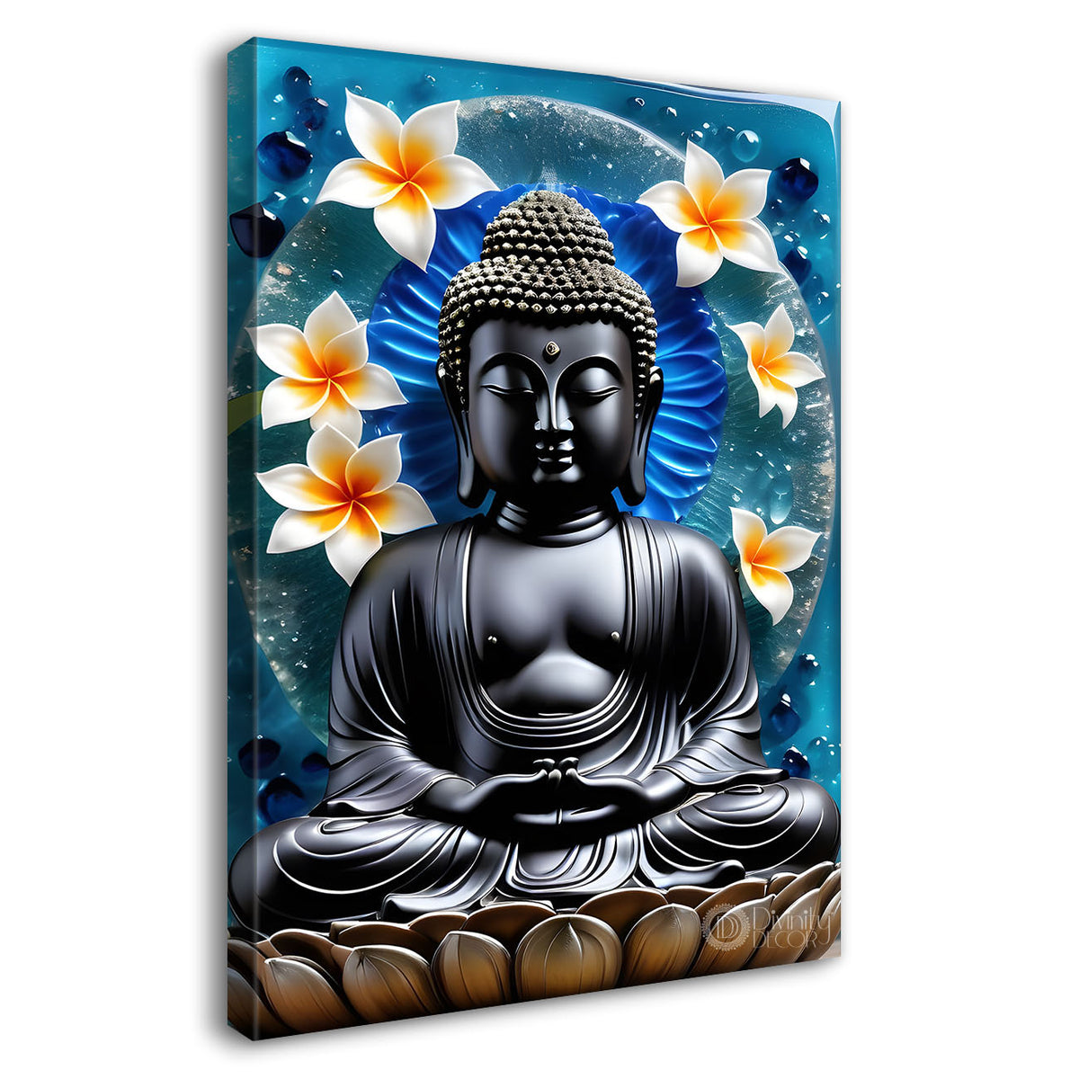 Grey buddha in white flowers background textured painting - Buddha-V-53 - Without Frame - Only Printed Canvas / 18x30 inch