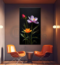 Orange and purple flowers in dark textured painting- Flower-V-408 – Divinity Decor index