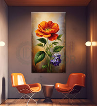Orange flower in light brown textured art - Flower-V-484 - Without Frame - Only Printed Canvas / 18x30 inches