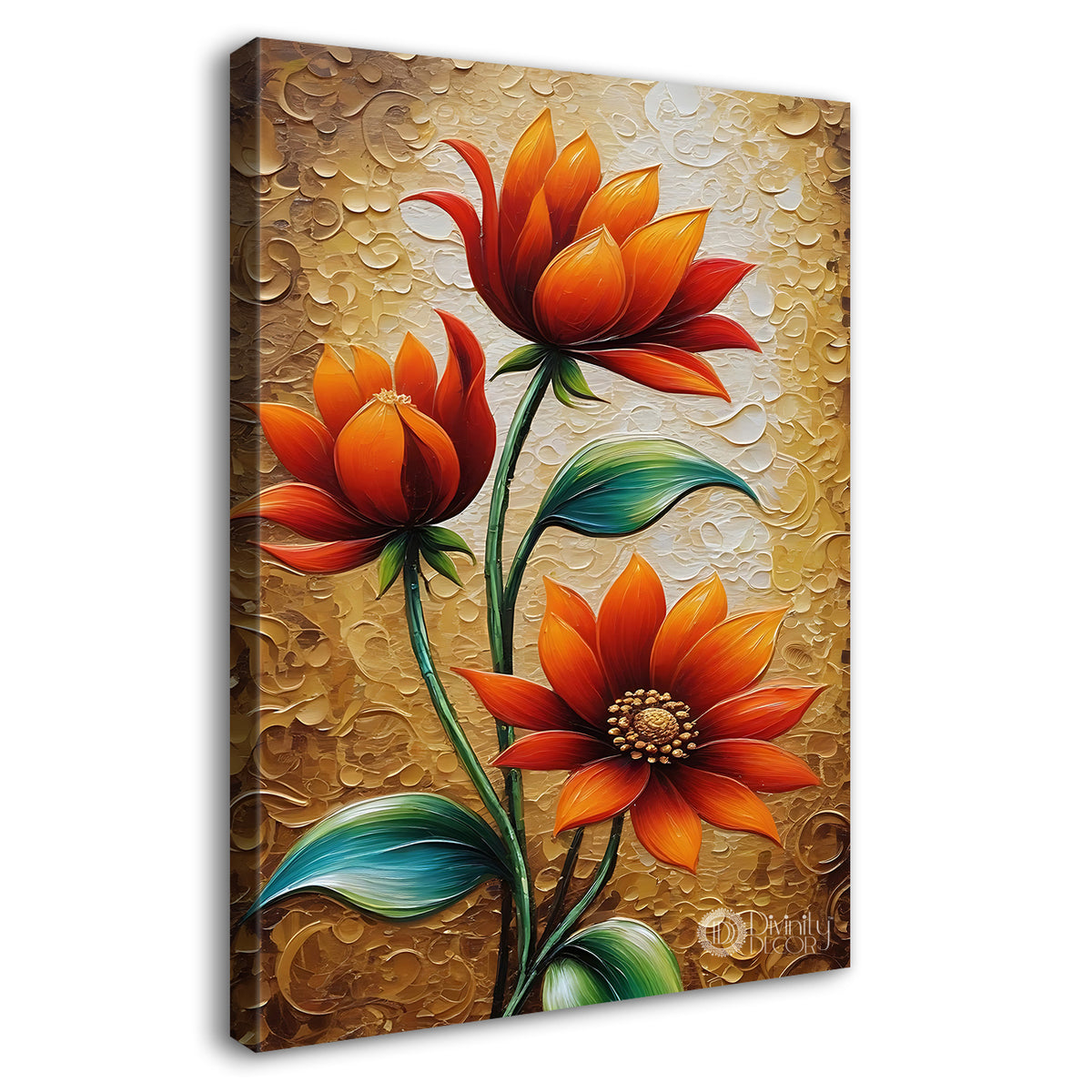 Orange flowers in light brown textured painting- Flower-V-431 – Divinity Decor index