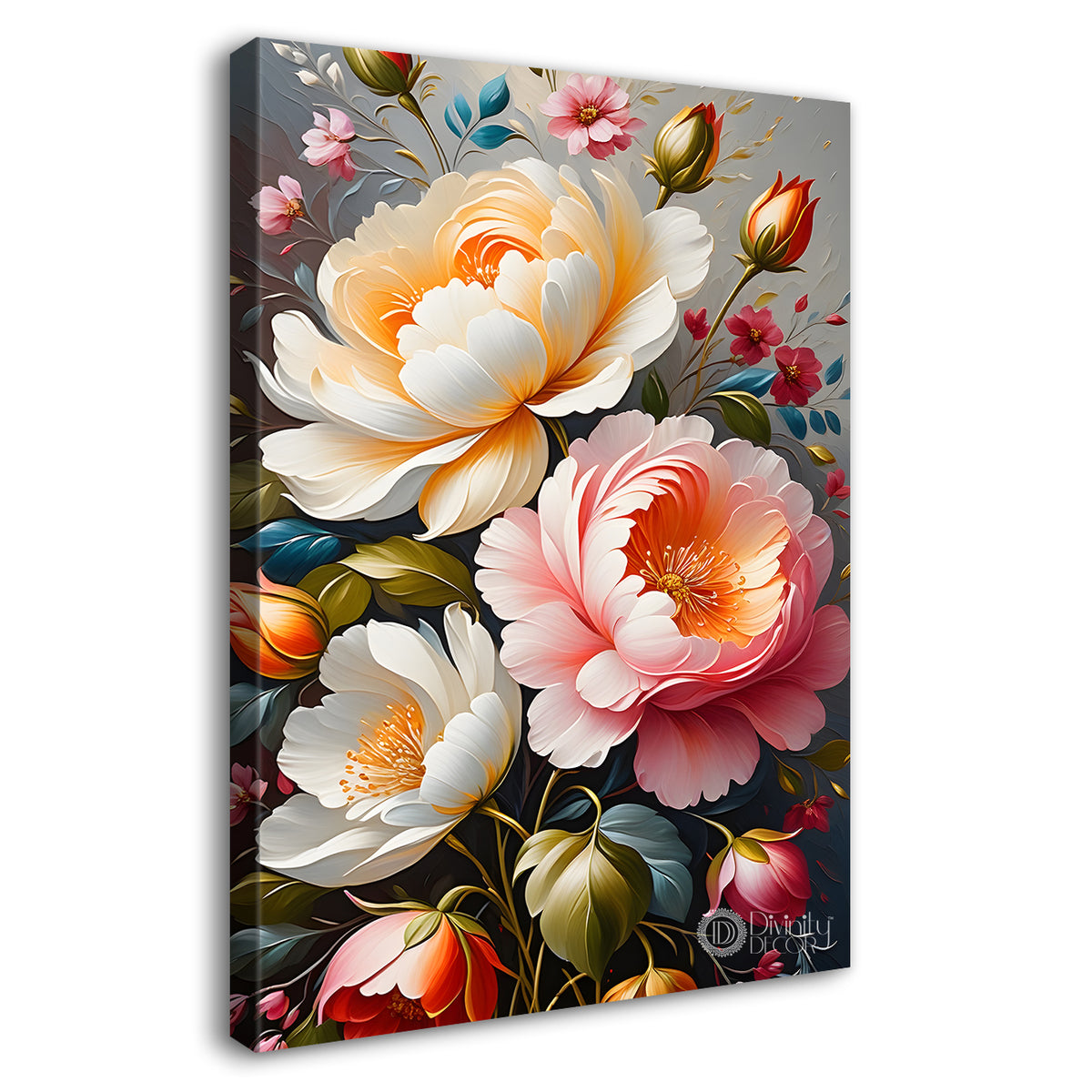Pink and white flowers textured painting- Flower-V-187 – Divinity Decor index