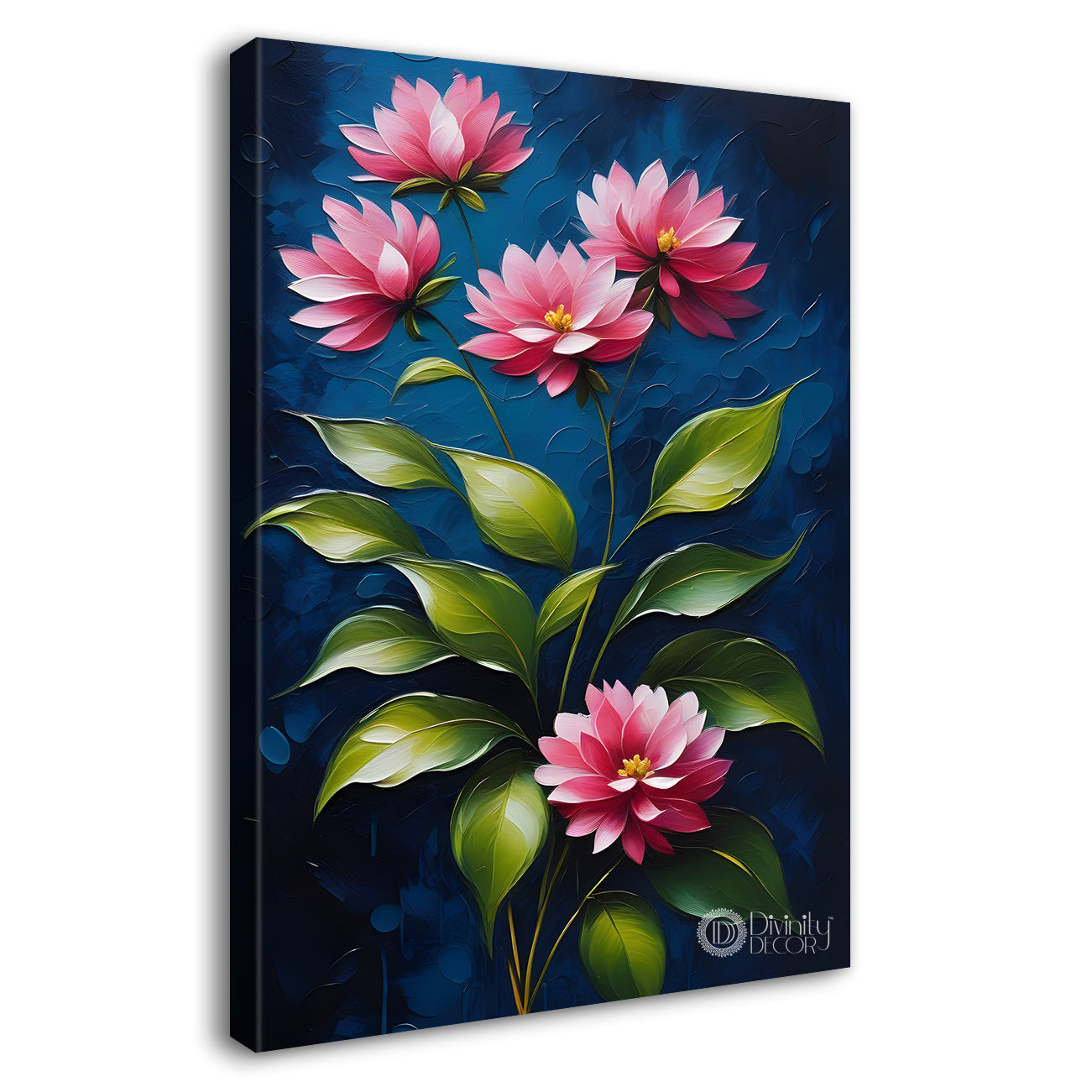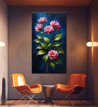 Pink flowers in dark textured painting- Flower-V-189 – Divinity Decor index