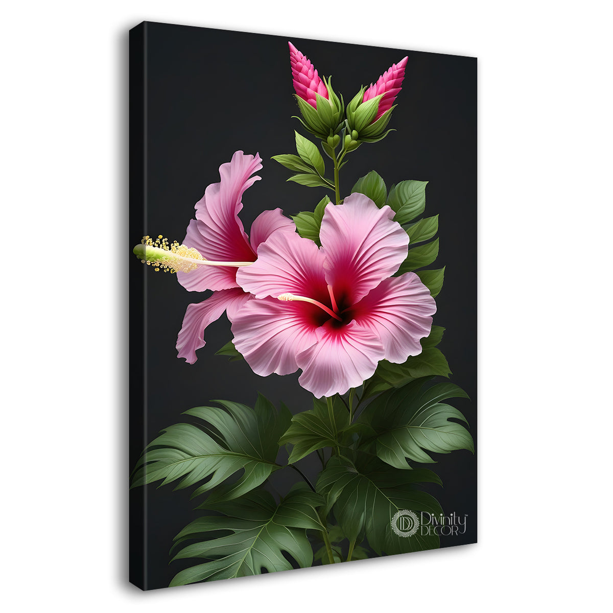 Pink flowers in dark textured painting- Flower-V-317 – Divinity Decor index