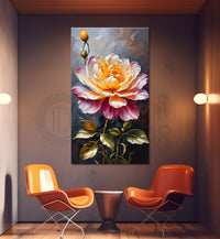 Pink flowers in grey textured painting - Flower-V-209 - Without Frame - Only Printed Canvas / 18x30 inches