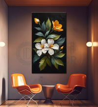 White and orange in dark textured painting- Flower-V-321 – Divinity Decor index