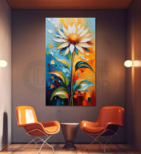 White flower in colourful textured painting- Flower-V-116 – Divinity Decor index