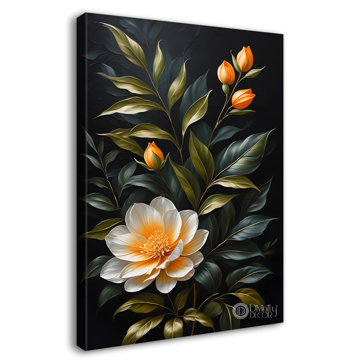 White flower in dark textured background painting- Flower-V-338 - Without Frame - Only Printed Canvas / 18x30 inches