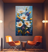 White flowers in blue textured background painting - Flower-V-16 – Divinity Decor index