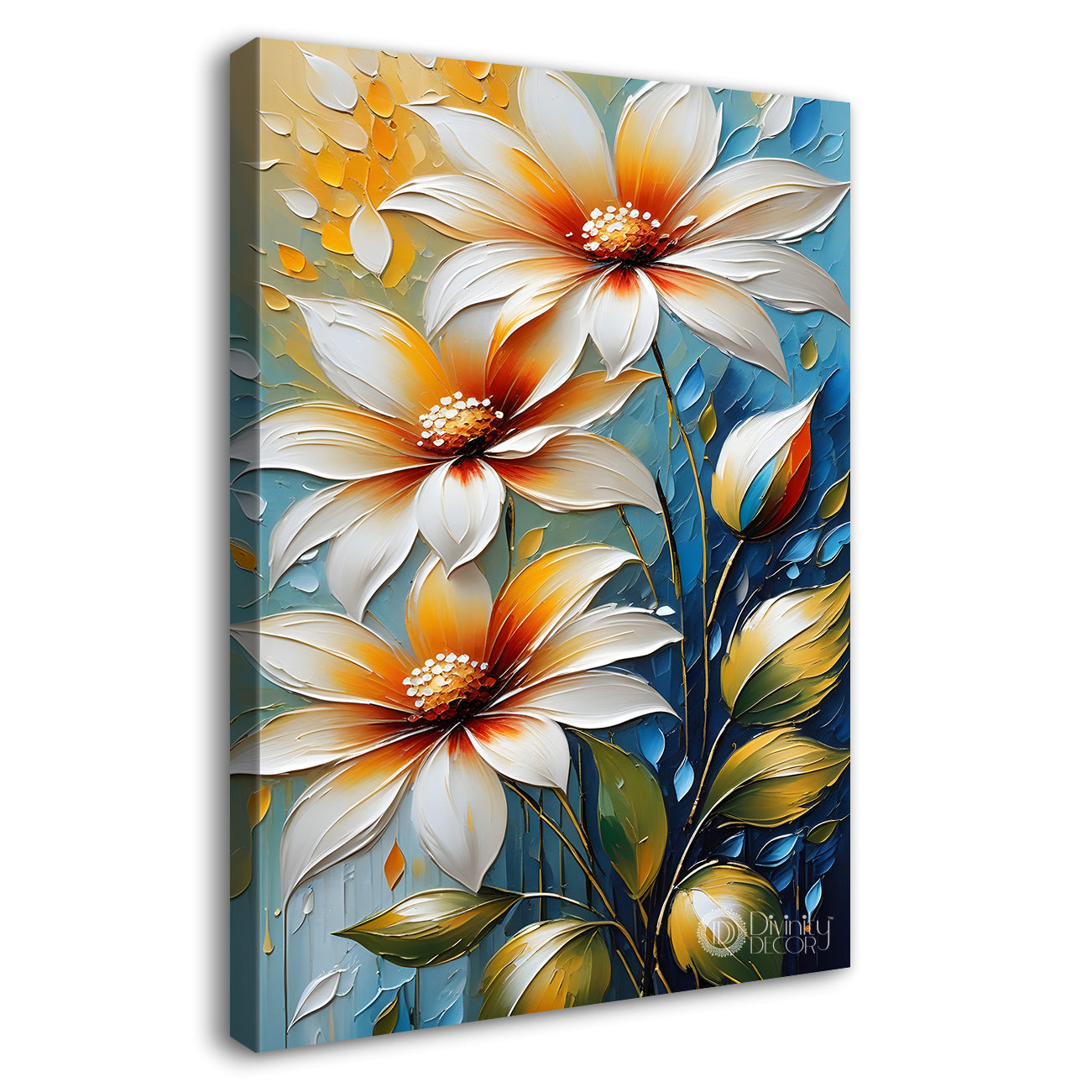 White flowers in blue textured background painting - Flower-V-99 – Divinity Decor index