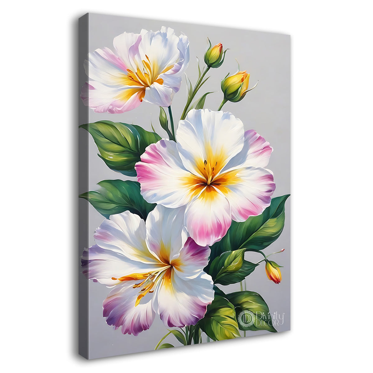 White flowers in blue textured painting - Flower-V-662 – Divinity Decor index