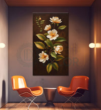 White flowers in brown textured painting- Flower-V-242 – Divinity Decor index