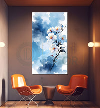 White flowers in cloudy textured background painting- Flower-V-366 - Without Frame - Only Printed Canvas / 18x30 inches