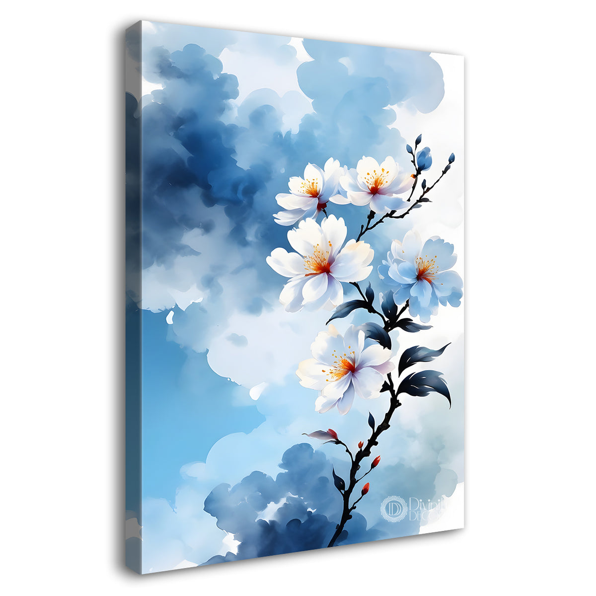White flowers in cloudy textured background painting- Flower-V-366 – Divinity Decor index