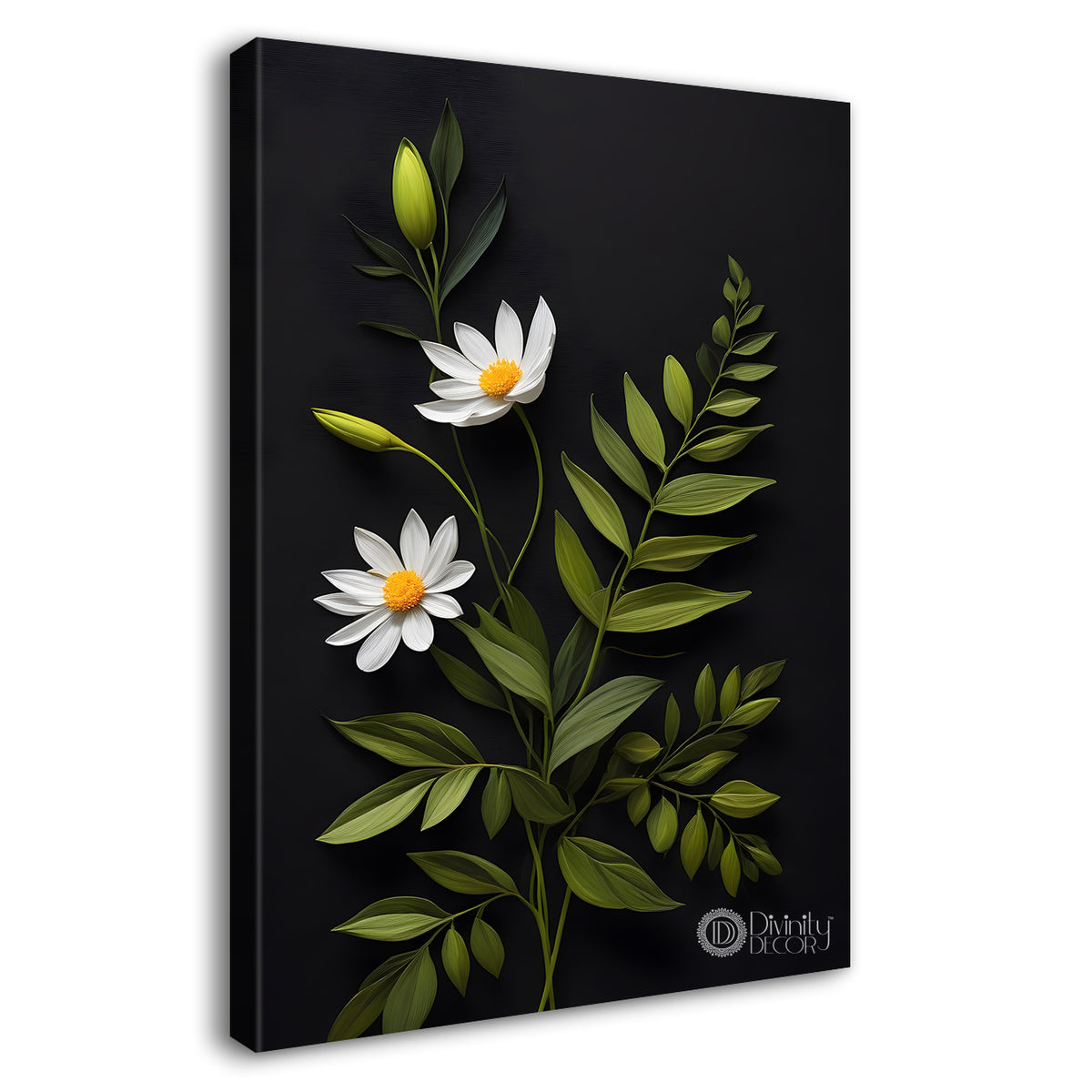 White flowers in dark textured painting- Flower-V-353 – Divinity Decor index