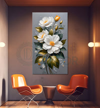 White flowers in grey textured background painting- Flower-V-125 – Divinity Decor index