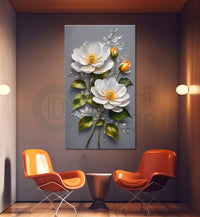 White flowers in grey textured background painting- Flower-V-210 – Divinity Decor index