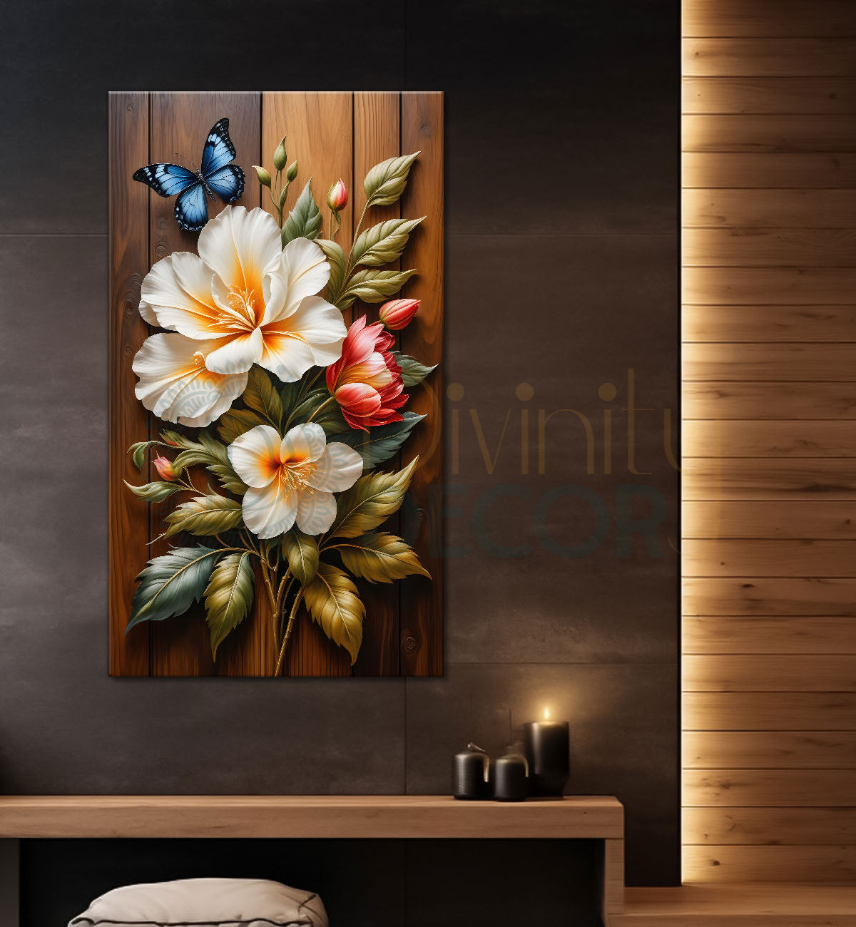 White flowers in light brown textured painting - Flower-V-87 – Divinity Decor index
