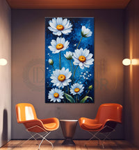 White flowers in navy blue background painting - Flower-V-486 - Without Frame - Only Printed Canvas / 18x30 inches