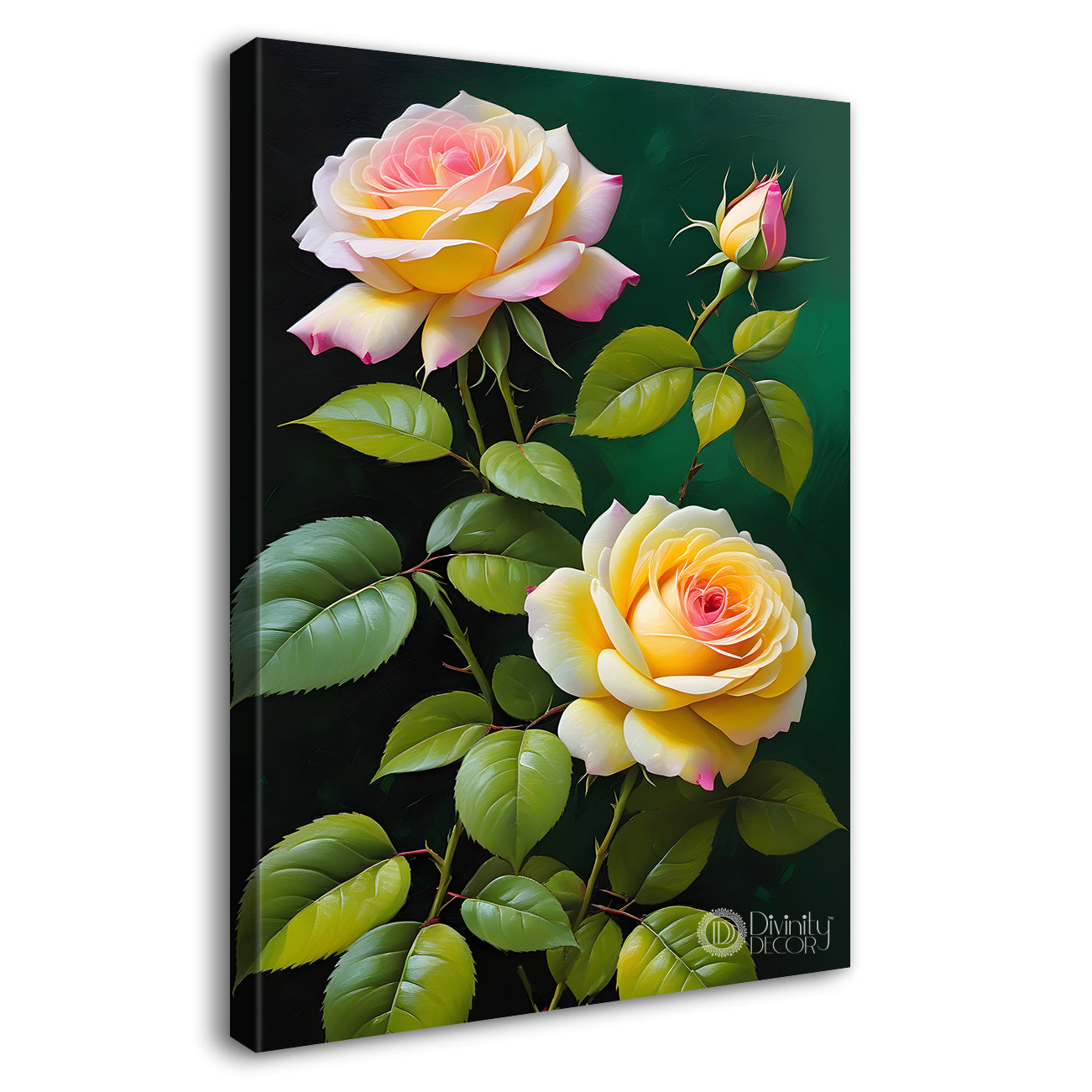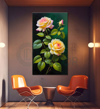 White flowers with leaves in dark textured background painting- Flower-V-272 - Without Frame - Only Printed Canvas / 18x30 inches