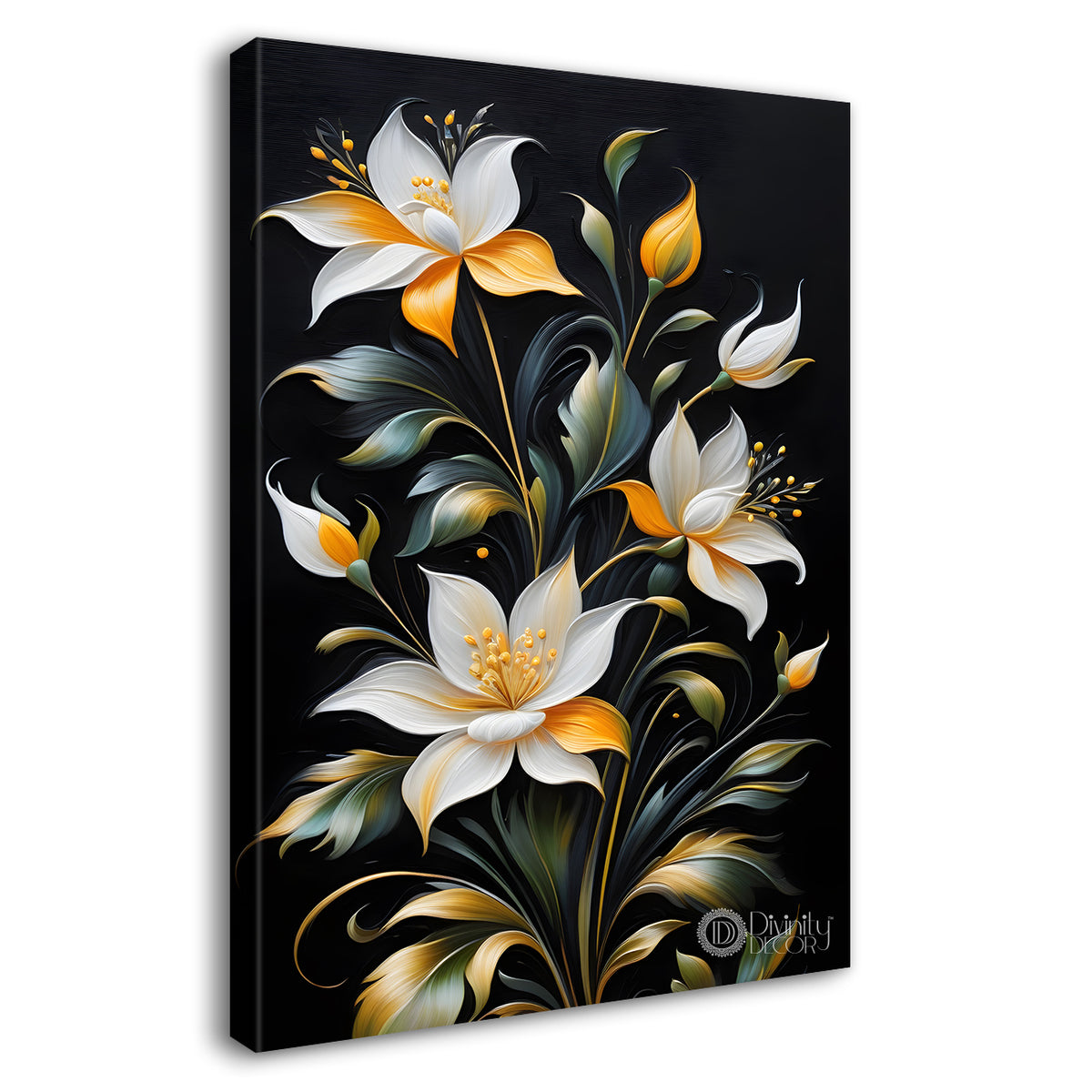 White flowers with leaves in dark textured background painting- Flower – Divinity Decor index