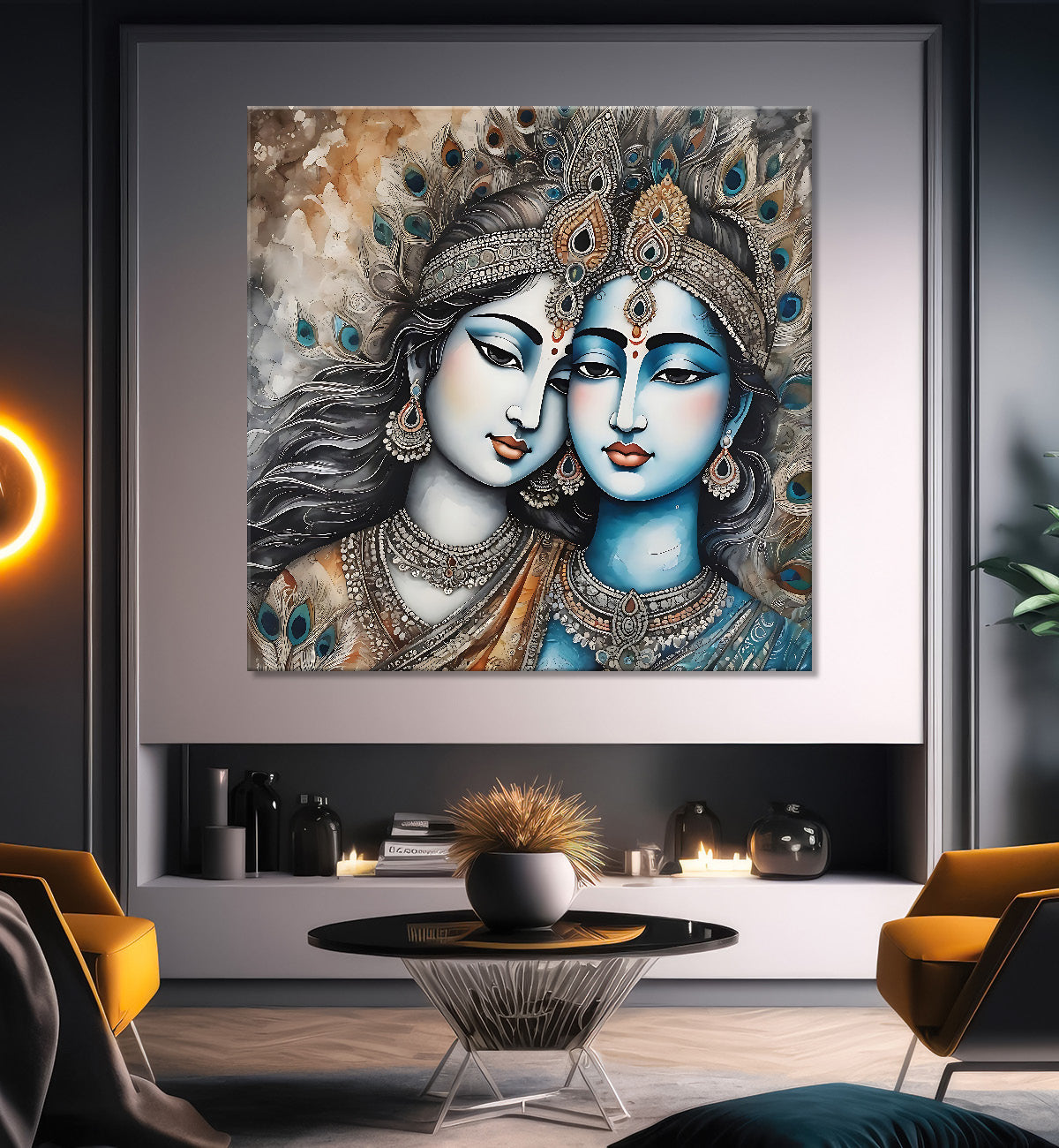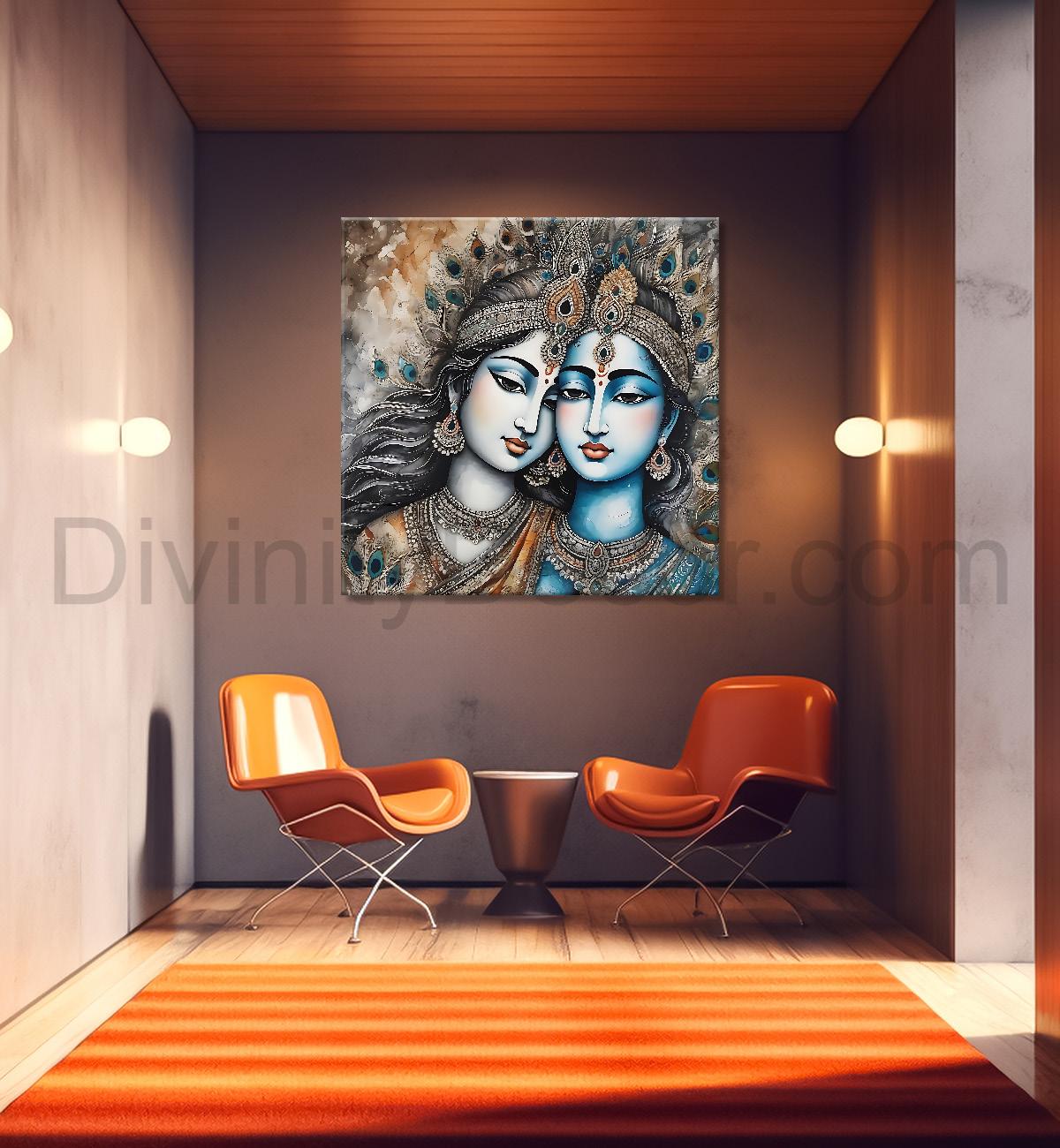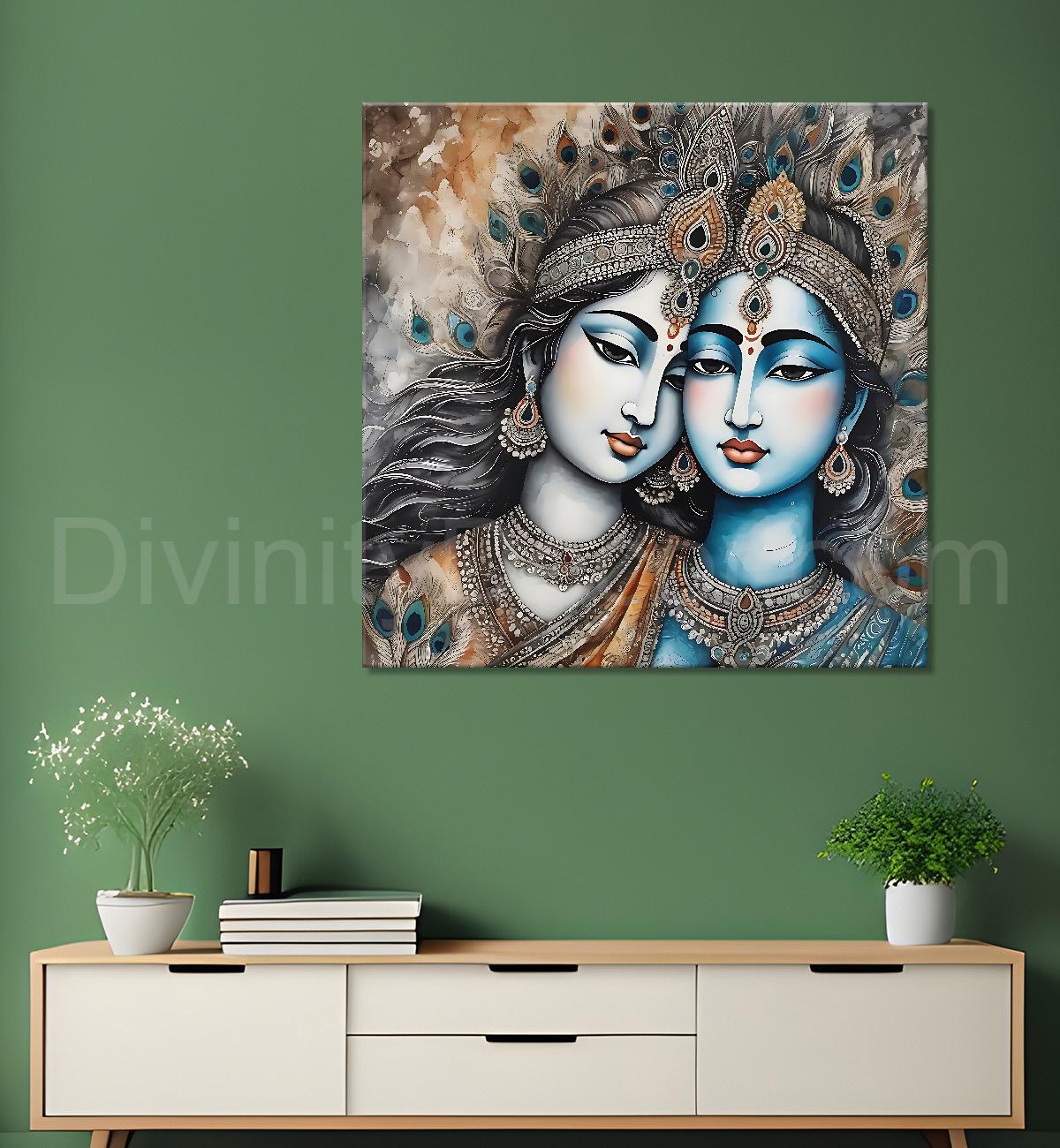 Krishna and Radha with grey and brown textured oil Canvas Painting 24X – Divinity Decor index