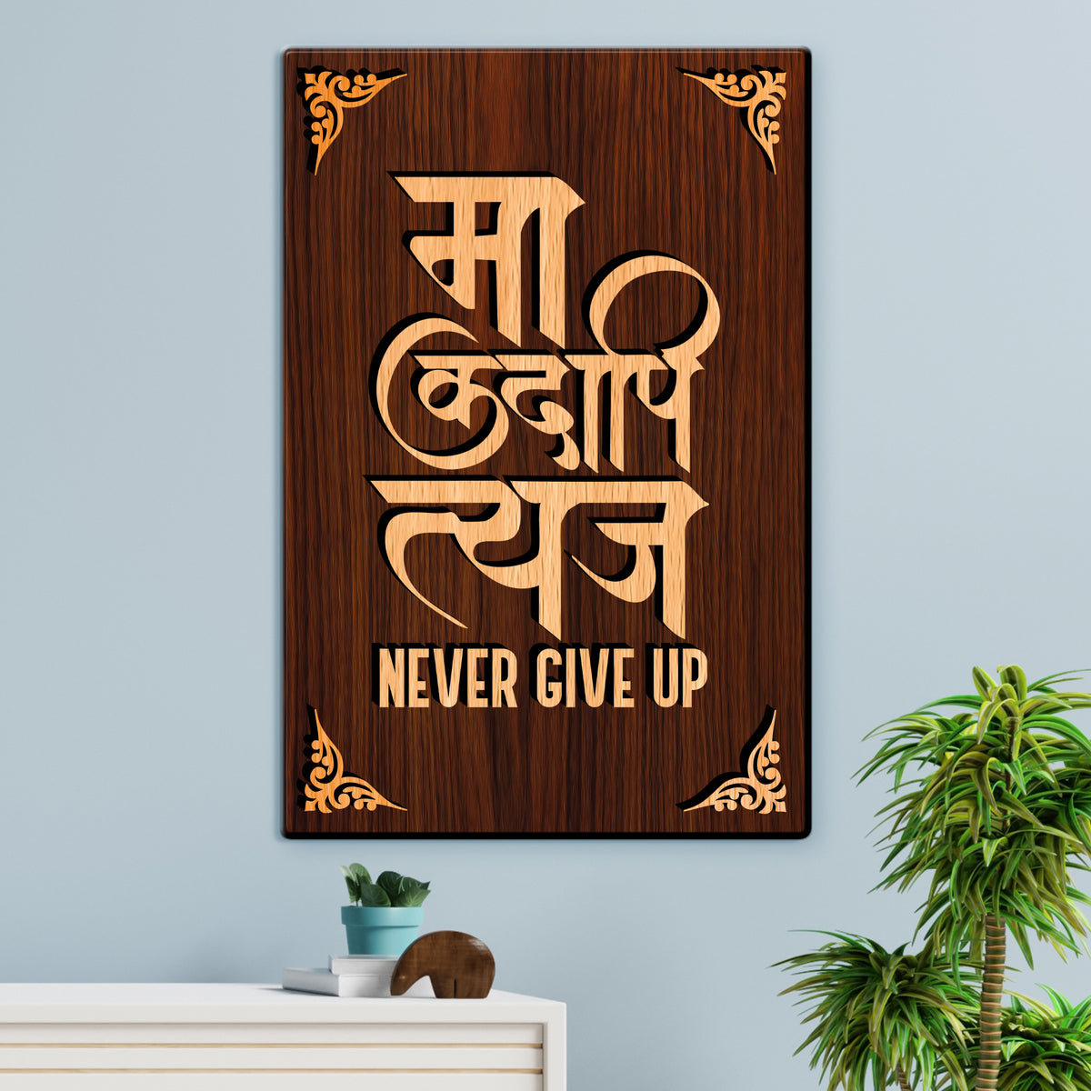 Maa Kadapi Tyaj / Never Give Up For Gifting and Home Decor Wooden Wall Decor, Wall Hanging - 168 - 8x12