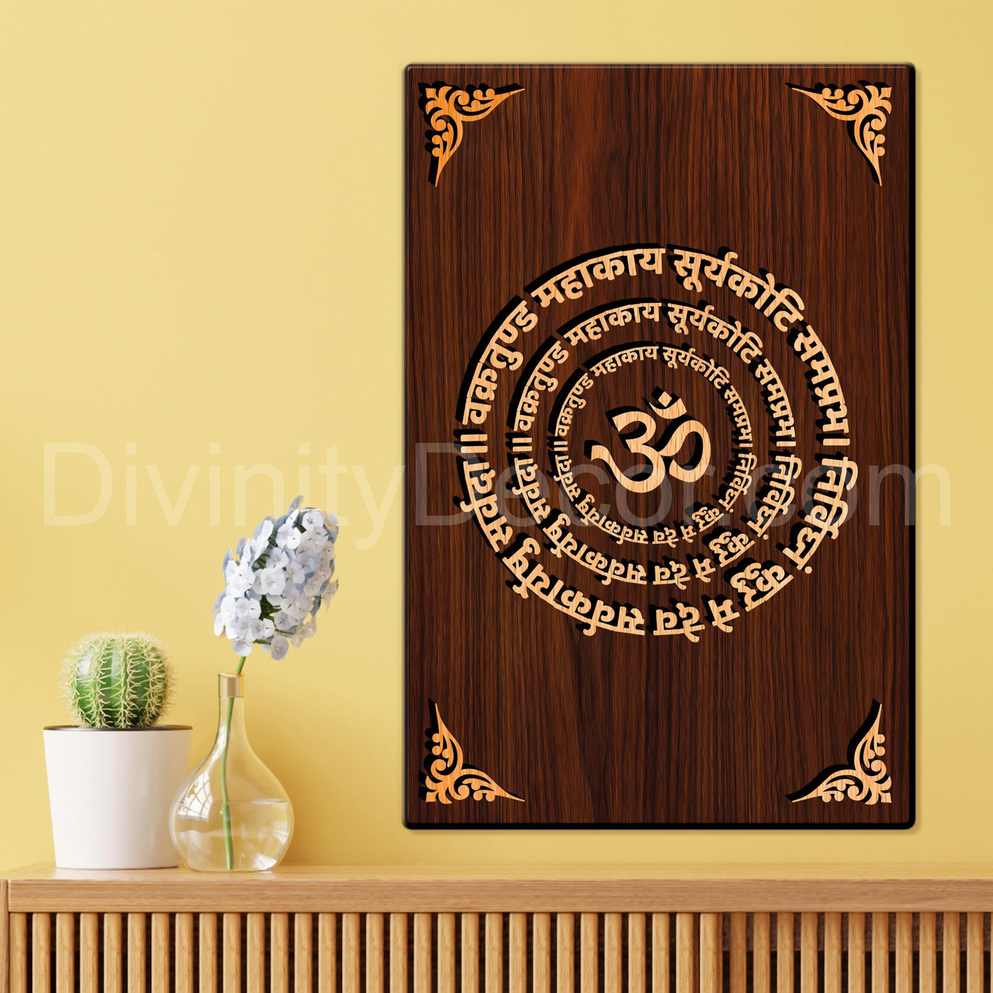 Shree Ganesh Mantra For Gifting and Home Decor Wooden Wall Decor, Wall Hanging - 156 - 8x12