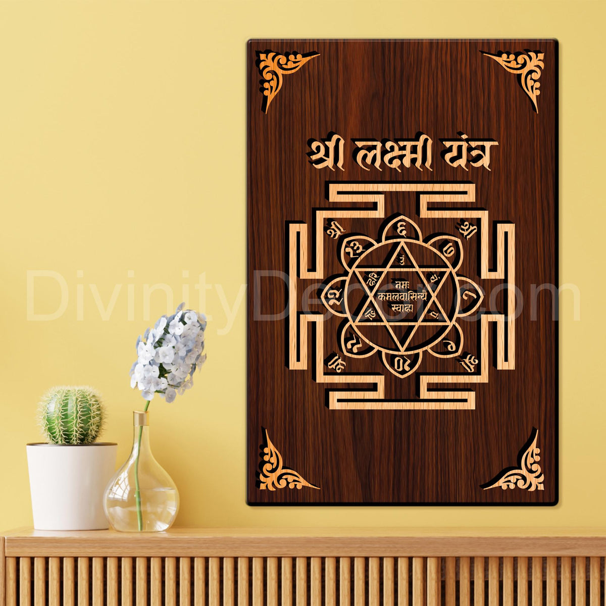 Shree Laxami Yantra For Gifting and Home Decor Wooden Wall Decor, Wall Hanging - 157 - 8x12