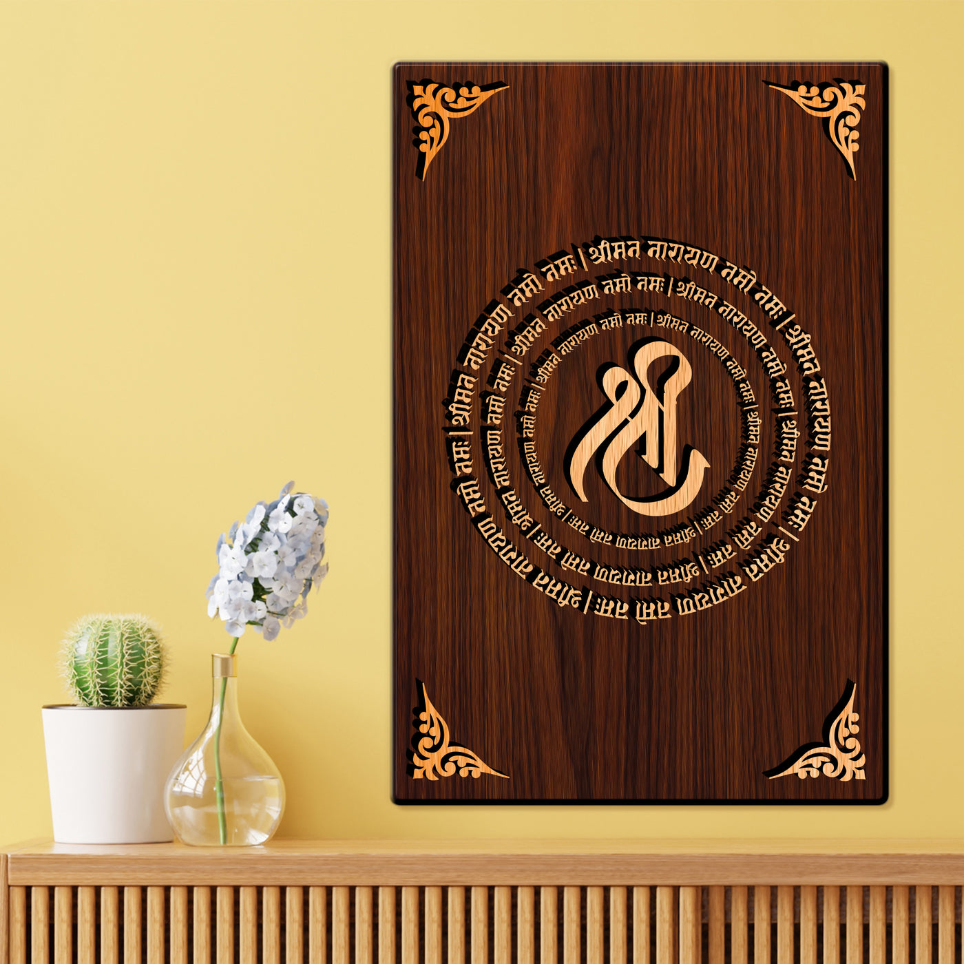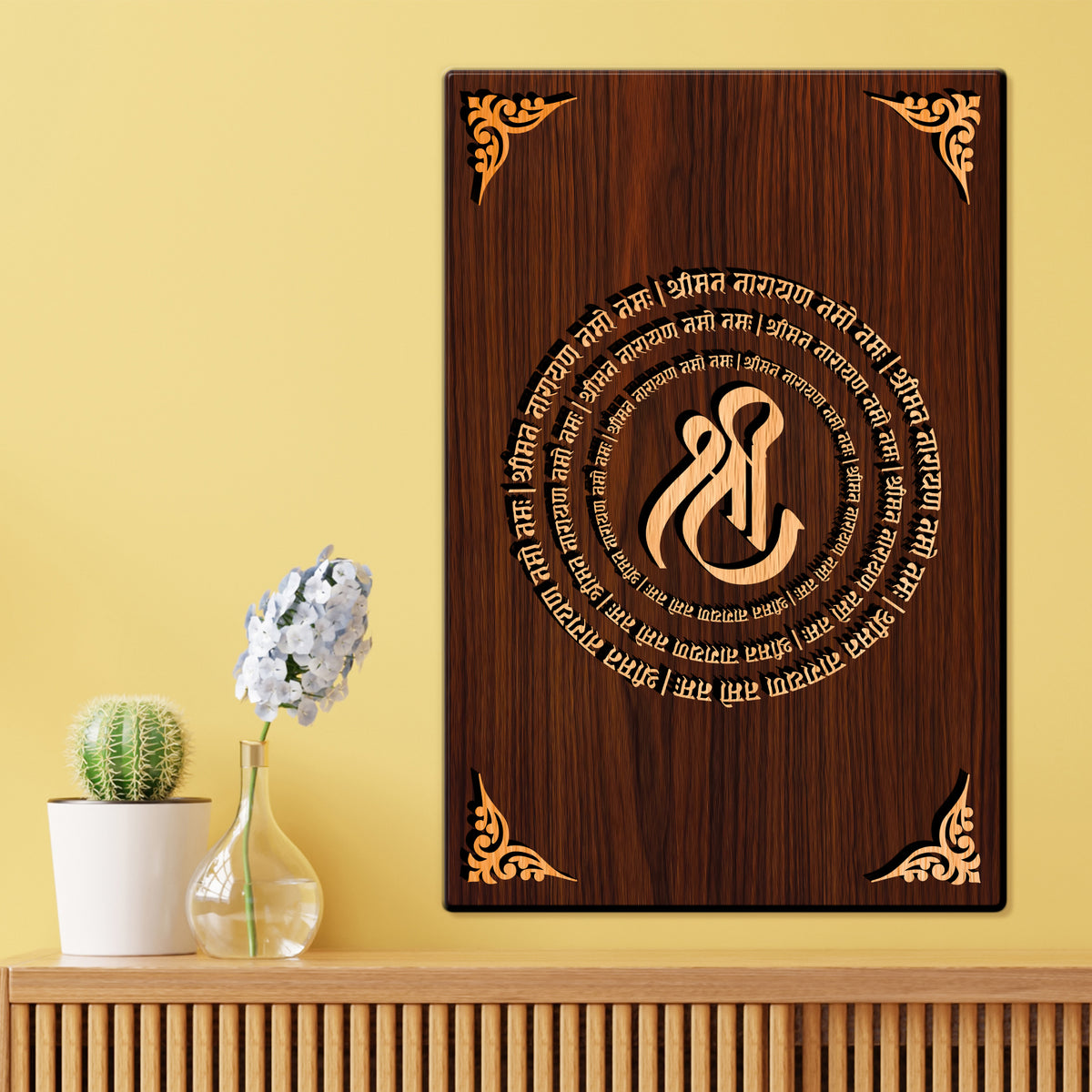 Shree Narayan Mantra For Gifting and Home Decor Wooden Wall Decor, Wall Hanging - 150 - 8x12