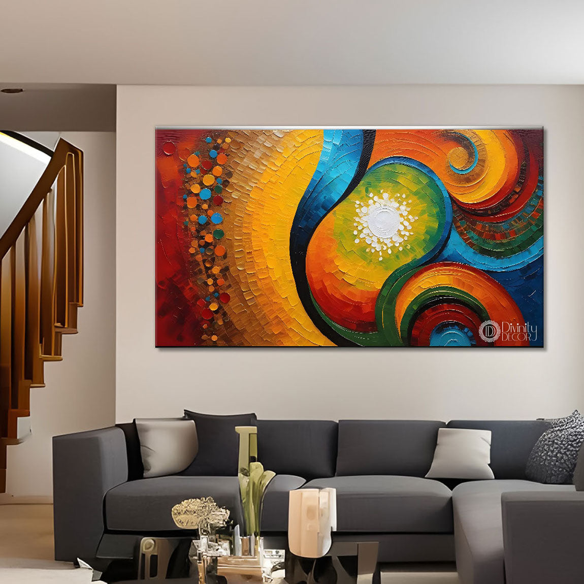 Colorful textured oil painting Canvas Painting - Design - Modern-L-279 - Without Frame - Only Printed Canvas / 18x30 inch