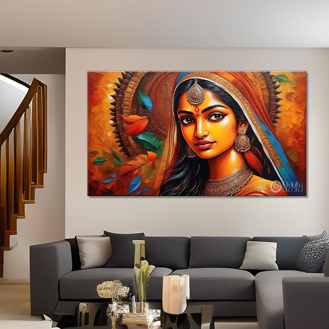 Indian woman face textured painting Canvas Painting - Design - Modern-L-103 - Without Frame - Only Printed Canvas / 18x30 inch