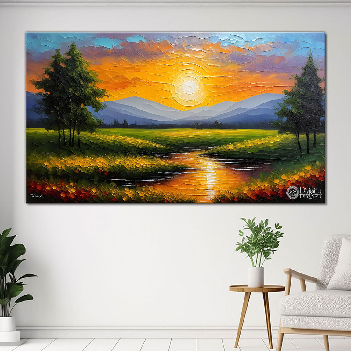 Mountains with the sunset and trees Canvas Painting - Nature Art -765 - Without Frame - Only Printed Canvas / 18x30 inches