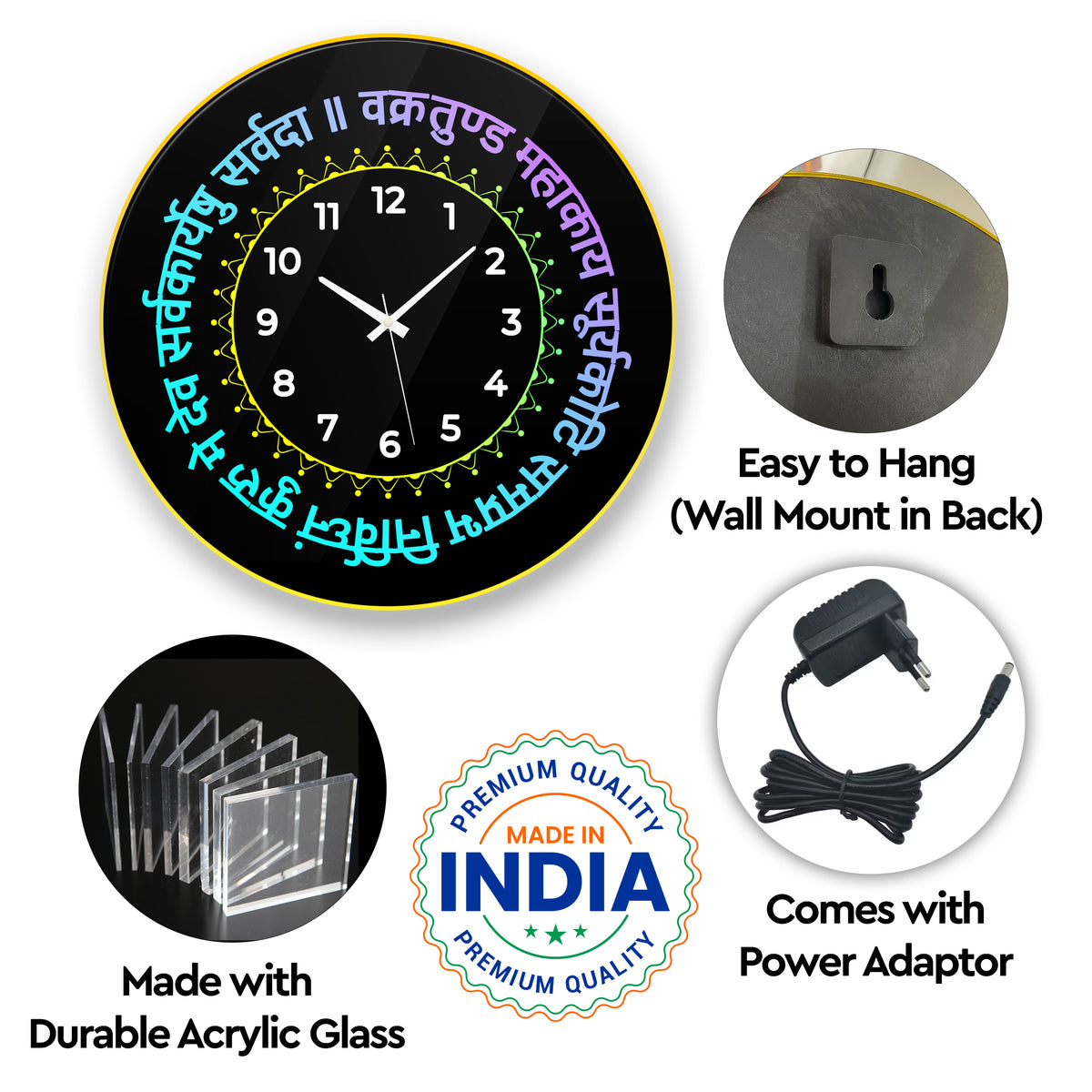 Spiritual LED Light Wall Clock - Design - 5 - 12x12 inch