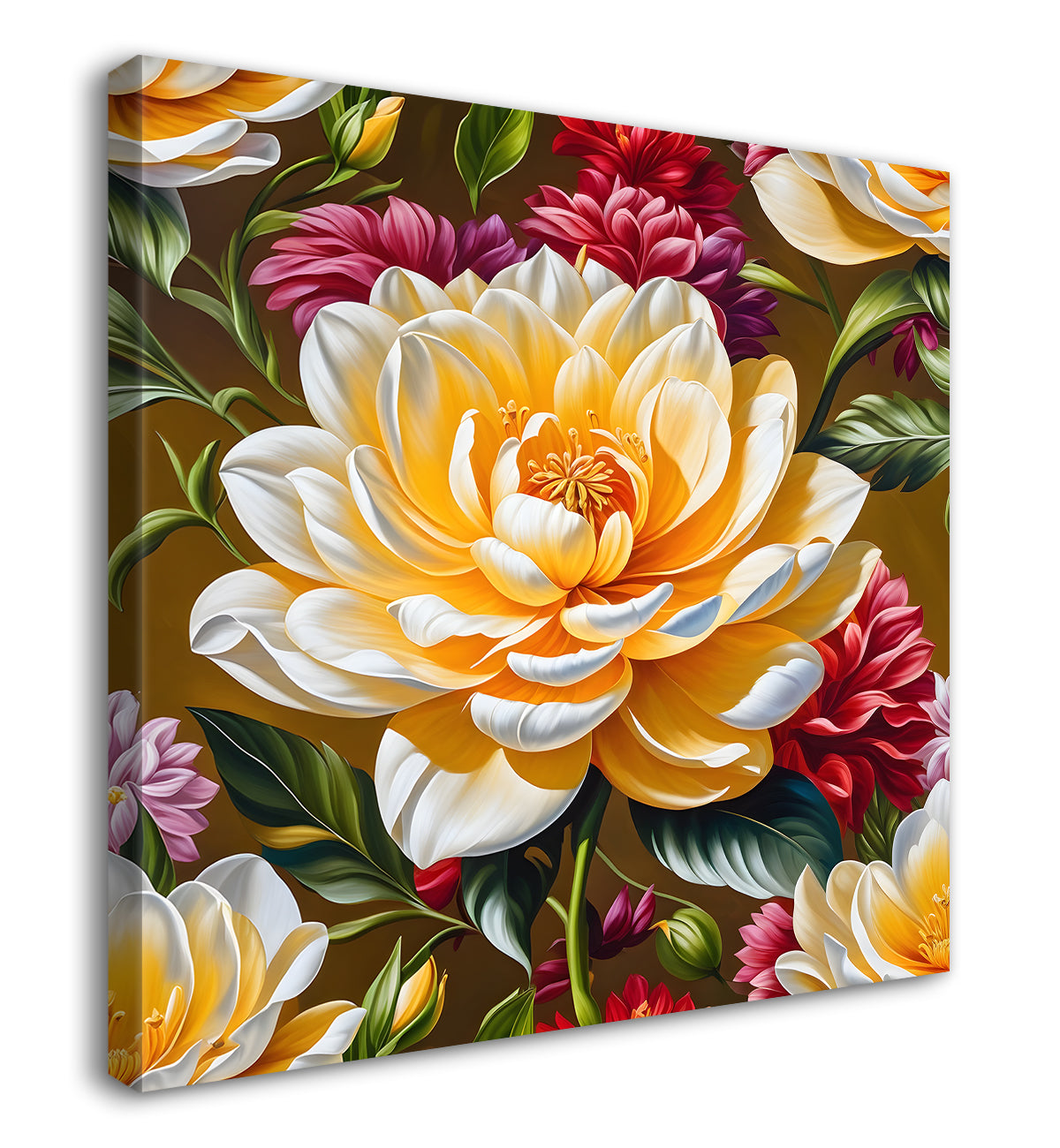 Yellow flower in textured oil painting Flower-S-357 - Without Frame - Only Printed Canvas