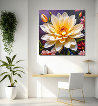 Yellow flower in textured oil painting Flower-S-360 - Without Frame - Only Printed Canvas
