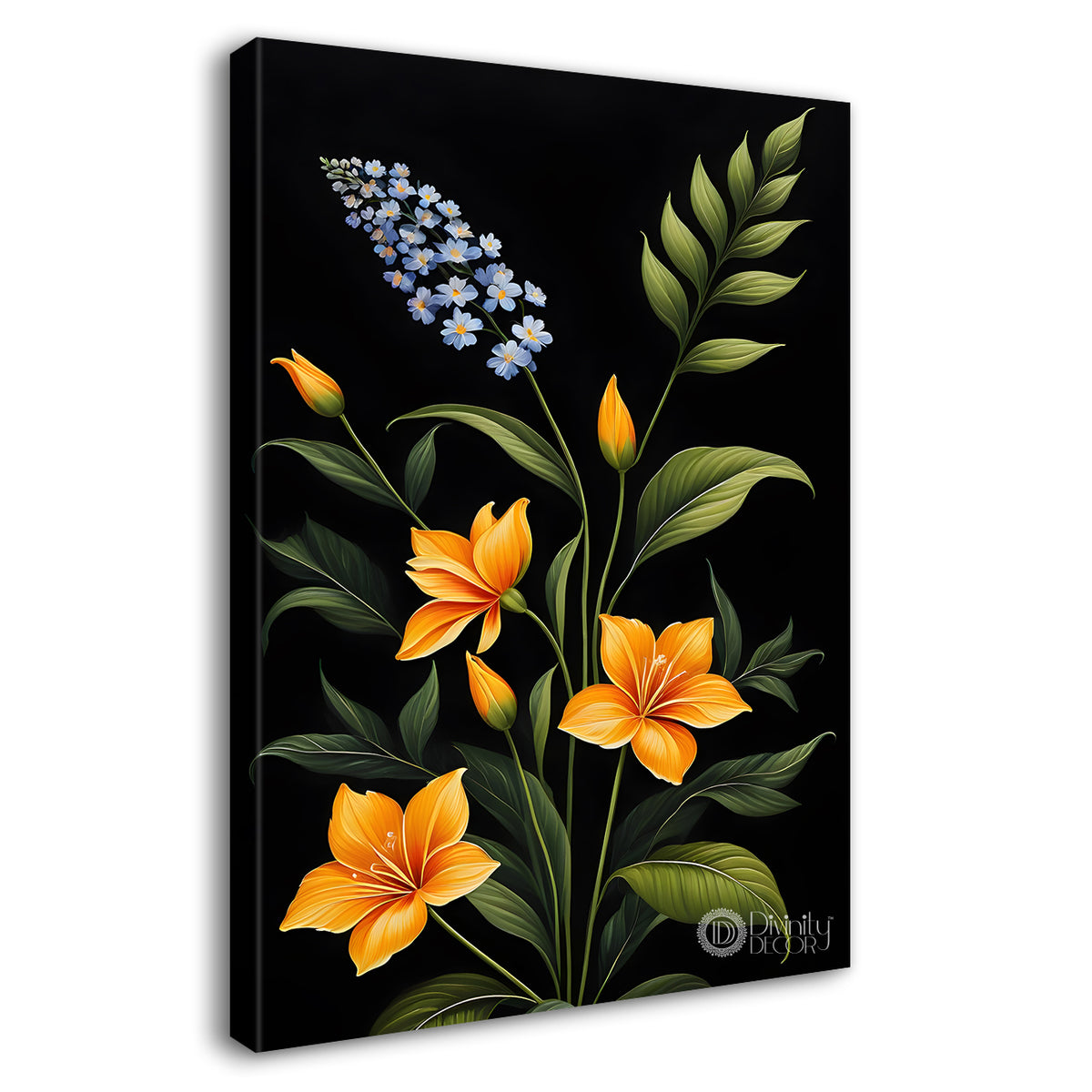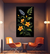 Yellow flowers in dark textured painting- Flower-V-396 – Divinity Decor index