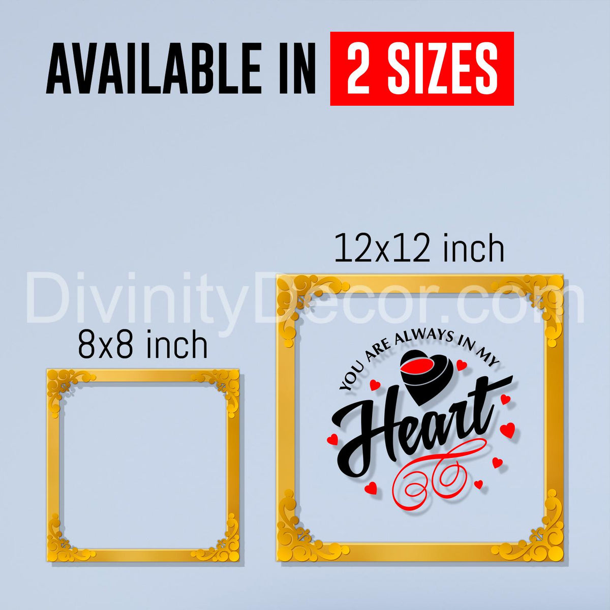 You are always in my heart Golden Plaque for Gifting, Wall Décor Clear UV print with Golden Border-300 - 8x8 inch